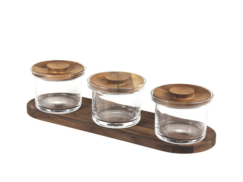 - Cra'ster Tilt Mini Glass Jar Set, 450mmx145mmx110mm, Walnut