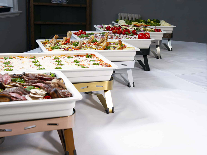 Eco Burner can be used under standard water chafing dishes but it excels when paired with an eco-Pan or Eco Serve Stand. The pan and the stand eliminate the need for water to be on the buffet chafers. Which has many advantages but the biggest is health and Safety.
