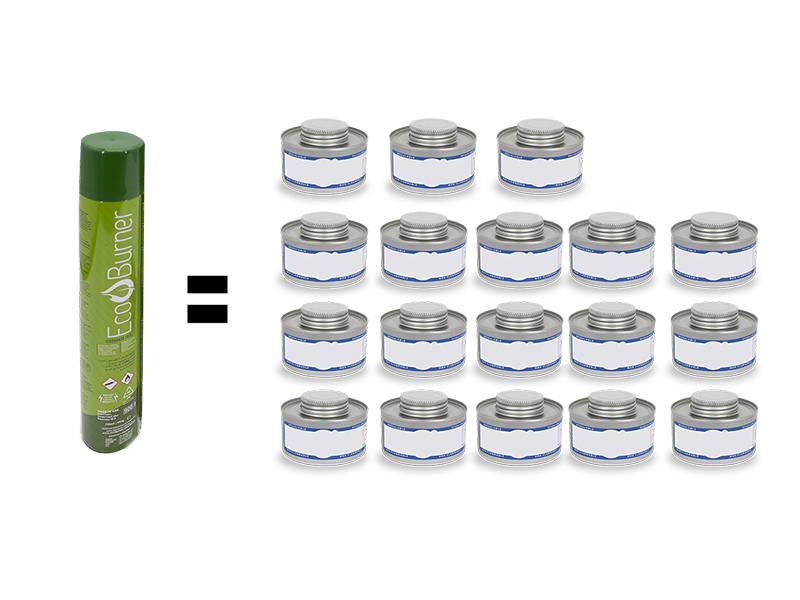 • Zero Waste: Unlike gel or wick chafing fuels that leave chemical waste and end up in landfill, EcoBurner is refillable and fully uses its fuel. One can replaces 18 gel pots and is recyclable, greatly reducing landfill waste.