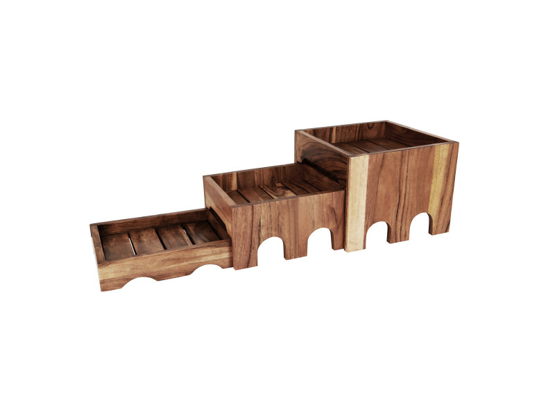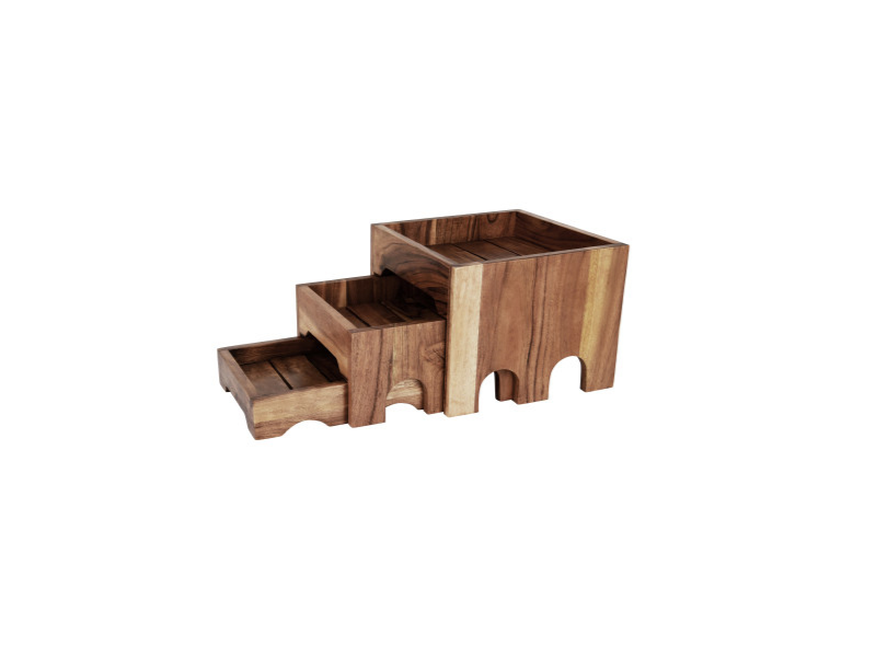 hef Inox Serve Natural Acacia 3-Tier Nesting Buffet Riser Set, 280mm