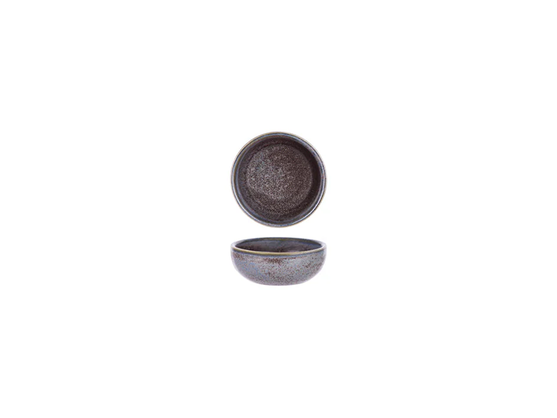 Tablekraft Greystone Blue boasts a rustic, cool-toned palette. This Round Sauce Dish features subtle texturing and muted tones across versatile multi-use profiles, making it a standout choice for hospitality settings.