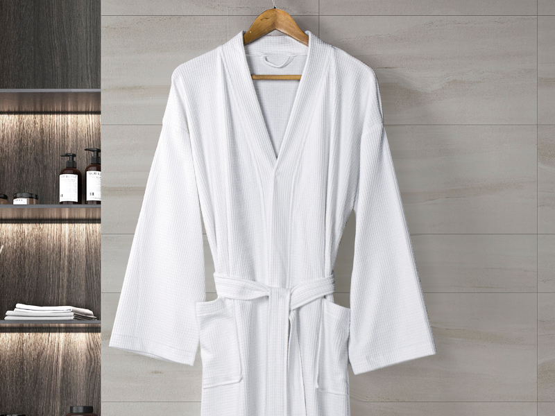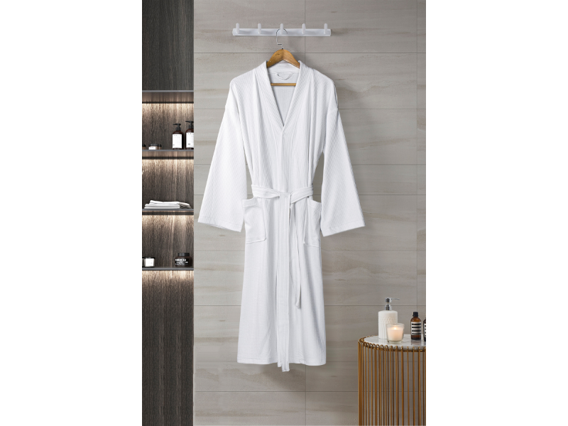 Wrap yours guests in a spa experience with our luxuriously soft spa-like waffle weave robe. Made from 60% cotton and 40% recyclable plastic bottles, it's extra gentle on delicate skin. Unisex design.