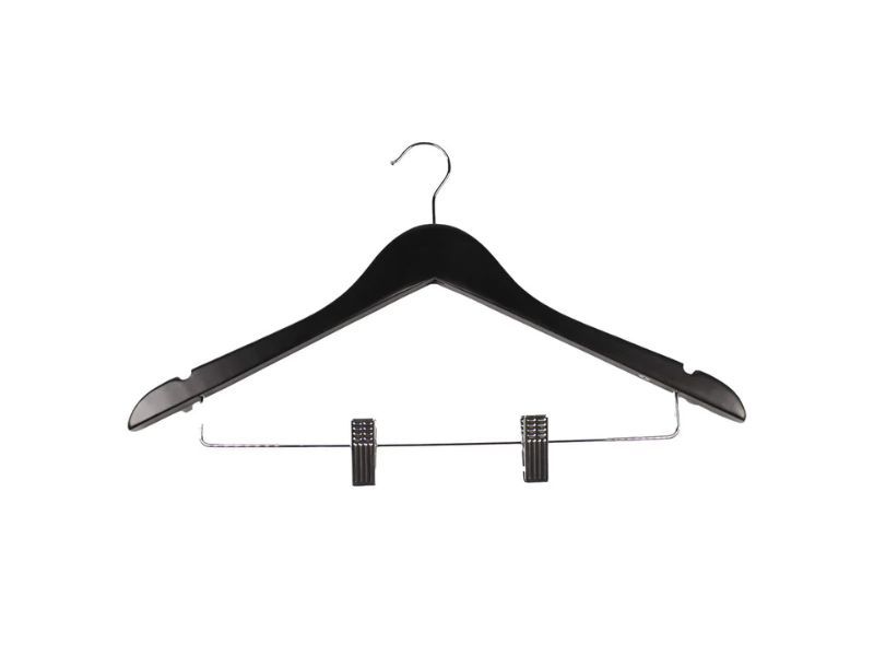 Luxury 20mm Female Wooden Coat Hanger with Notches and Clips, 445 mm, Black Satin