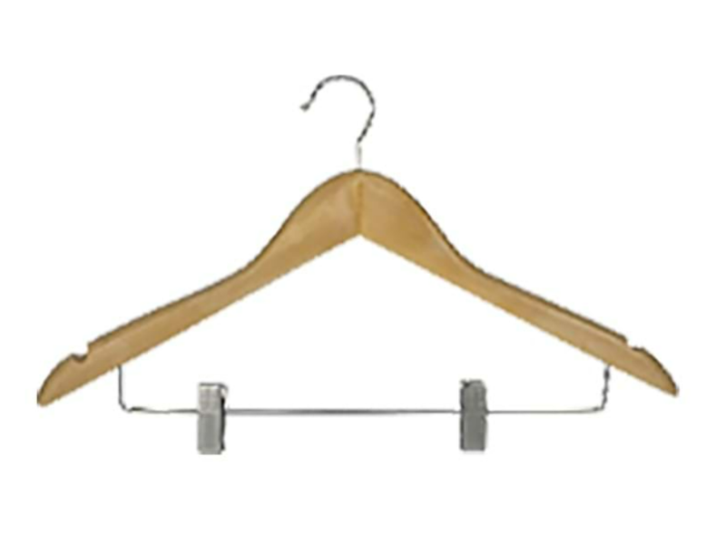 - Standard 12mm Hooked Coat Hanger with Notches & Clips, 445 mm, Natural Wood