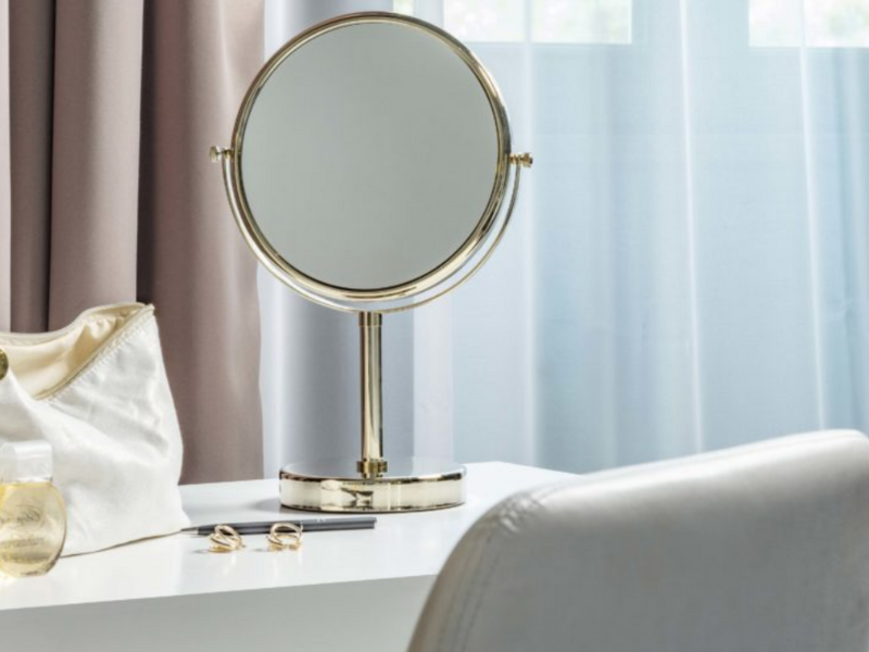 This JVD free standing mirror is a clever combination of stylish looks, flexibility and magnification. A brilliant mirror solution for the hotel guest bathroom or bedroom, this freestanding mirror has an elegant gold finish so it will suit most hotel decor styles.