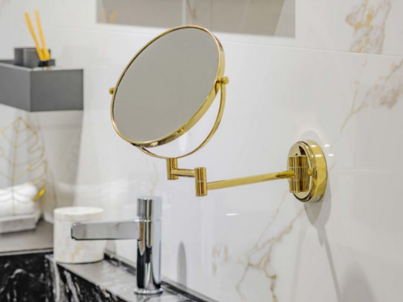 This Wall Mounted Cosmetic/Shaving Mirror is an elegant classic. With its stylish gold finish it's versatile enough to suit any hotel bathroom style and it's super flexible.