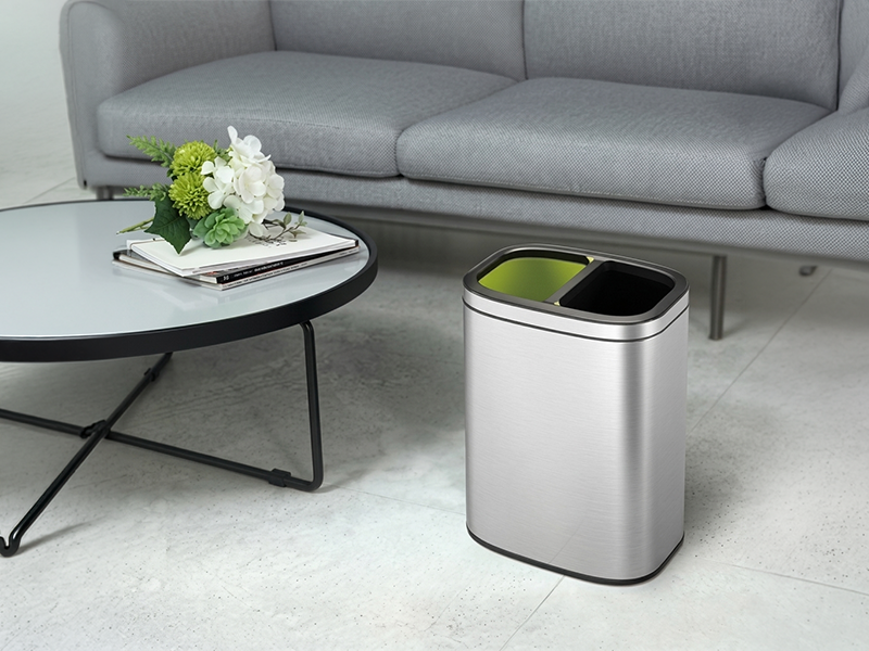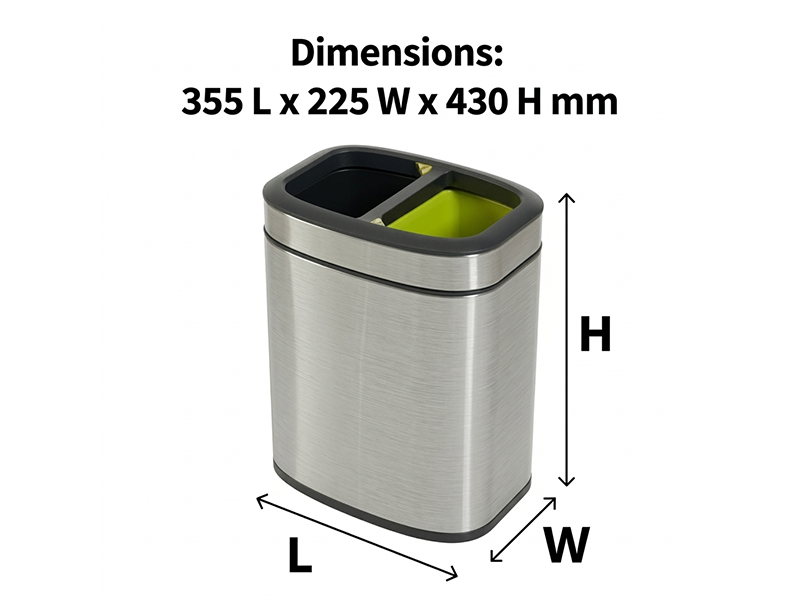 2 Compartment Rectangle Recycle Bin, 20 Litre, Stainless Steel