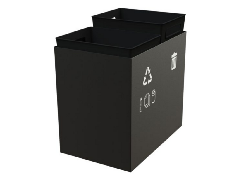 Black Rectangular 20L Recycle Bins With 2 Compartments