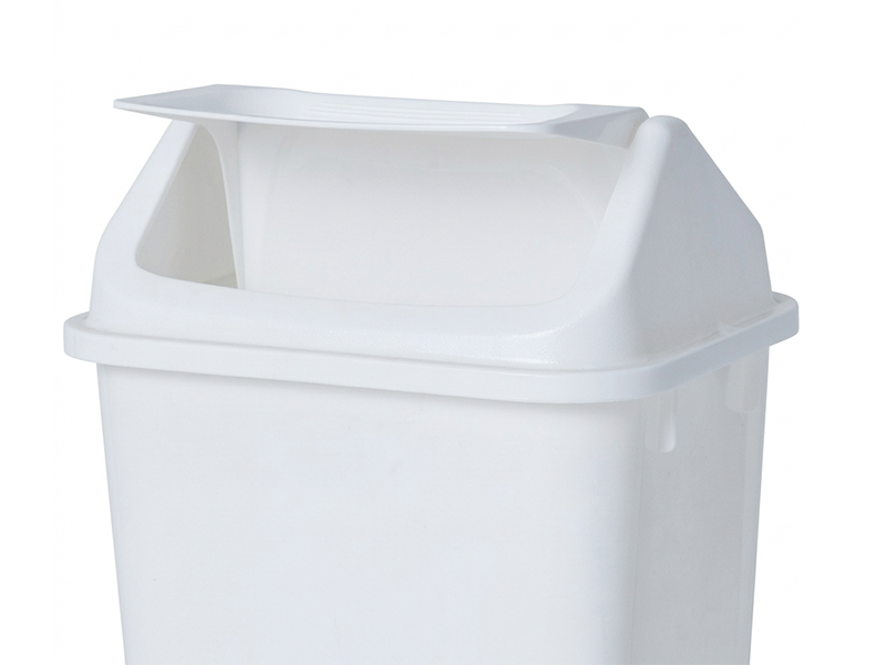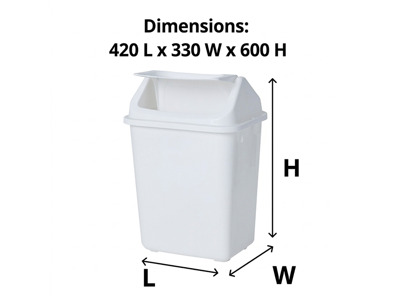White rubbish bin with swing-top lid style for easy disposal of waste, recyclable paper and cardboard. Ideal as a kitchen bin.