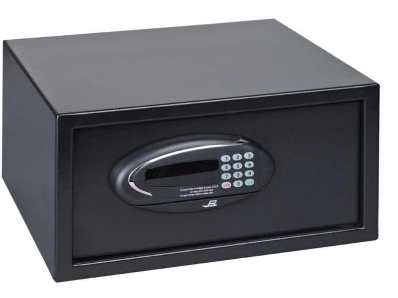Guests will be safe in the knowledge that their valuable items are securely stored inside this steel digital safe, with electronic lock and steel bolts.