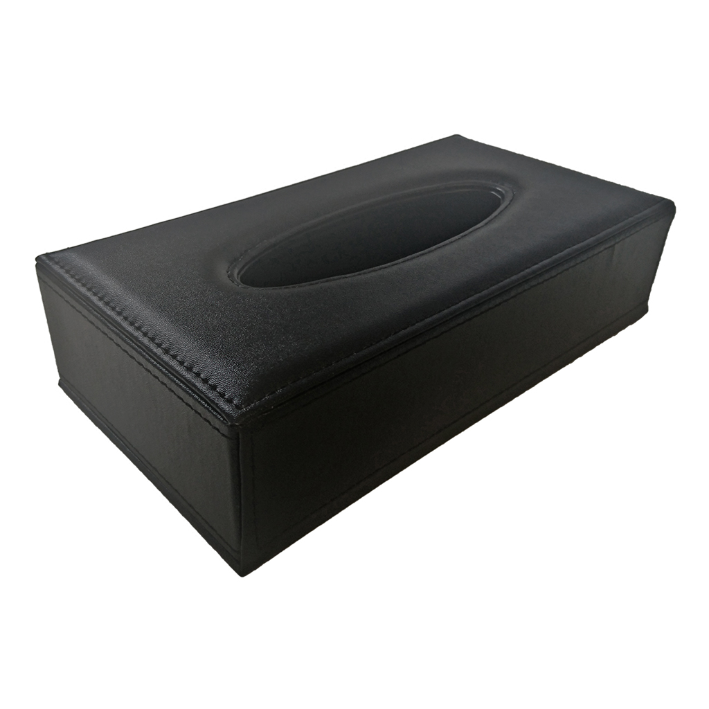Wooden rectangle facial tissue dispenser with leatherette covering and hinged opening base