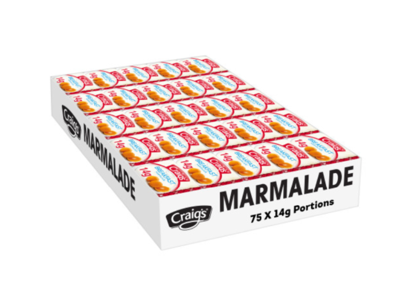 Craig's® Marmalade is ideal served with both toast and pastries. It has a well-balanced flavour and a thick yet spreadable texture. Packed in convenient and hygienic 14g portions, Craig's® Marmalade is ideal for serving at buffets and on front counters.