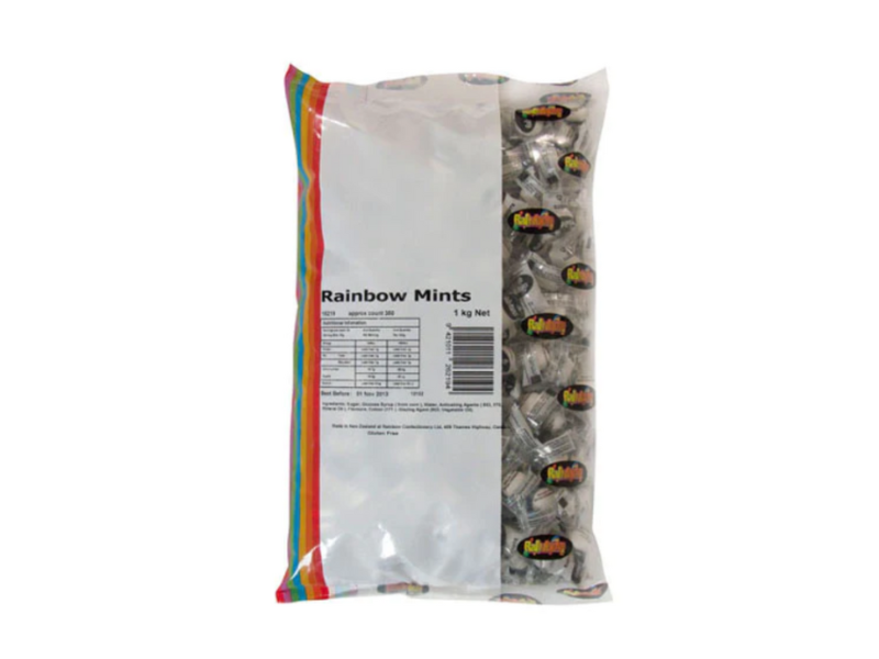 Rainbow mints are round, smooth and individually wrapped lollies with a mint flavour that are ideal for meetings, reception areas, restaurants, cafes and more.