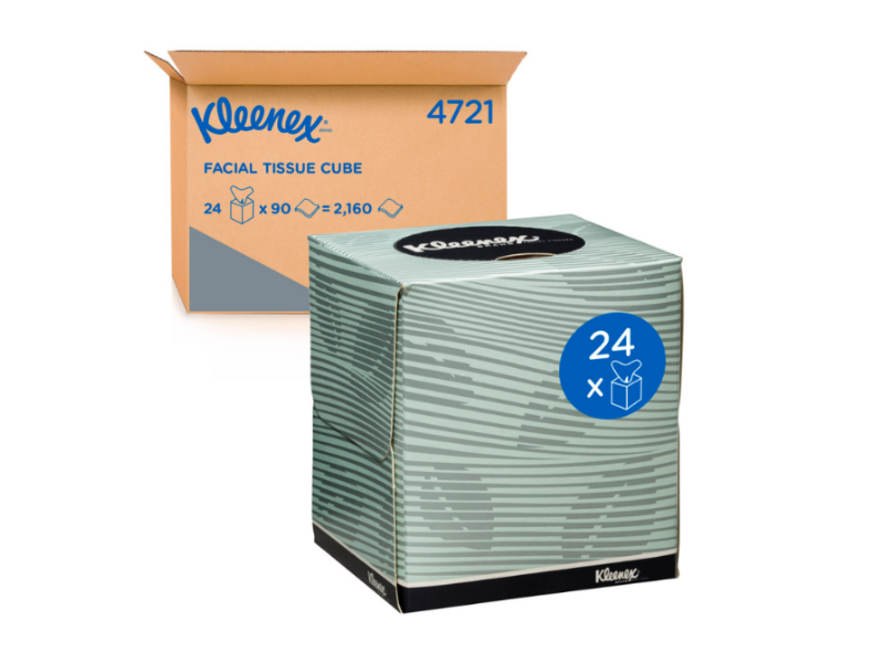 - Kleenex Cube Facial Tissues, 2ply, 90sheets/cube, 24cubes/ctn
