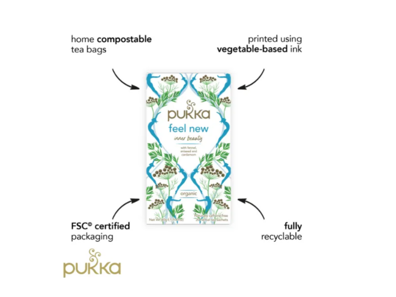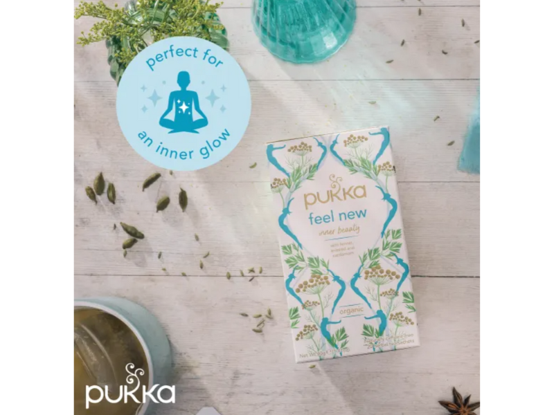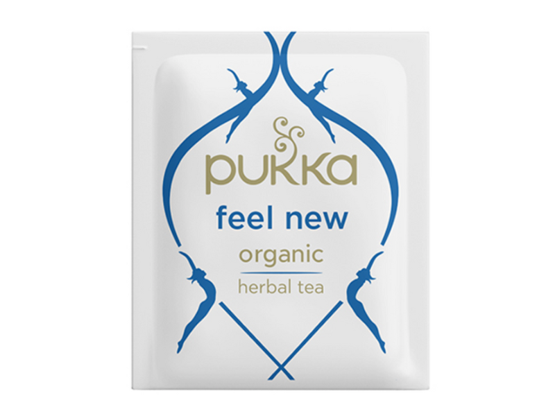 - Place a Pukka Feel New Organic Tea Bag in a cup