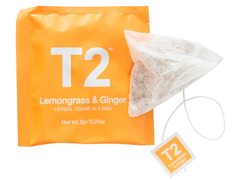 T2 Tea Lemongrass and Ginger Individually Wrapped Tea Bags, 100/pk