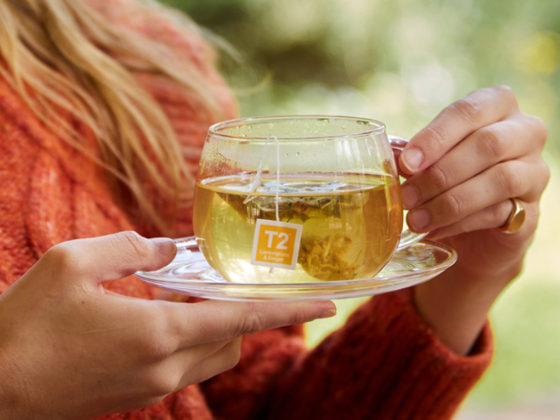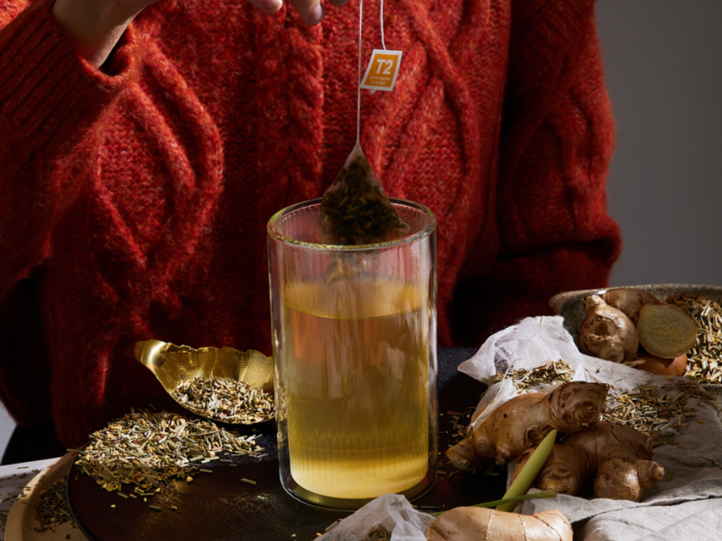 • Place a T2 Lemongrass and Ginger Tea Bag in a cup
