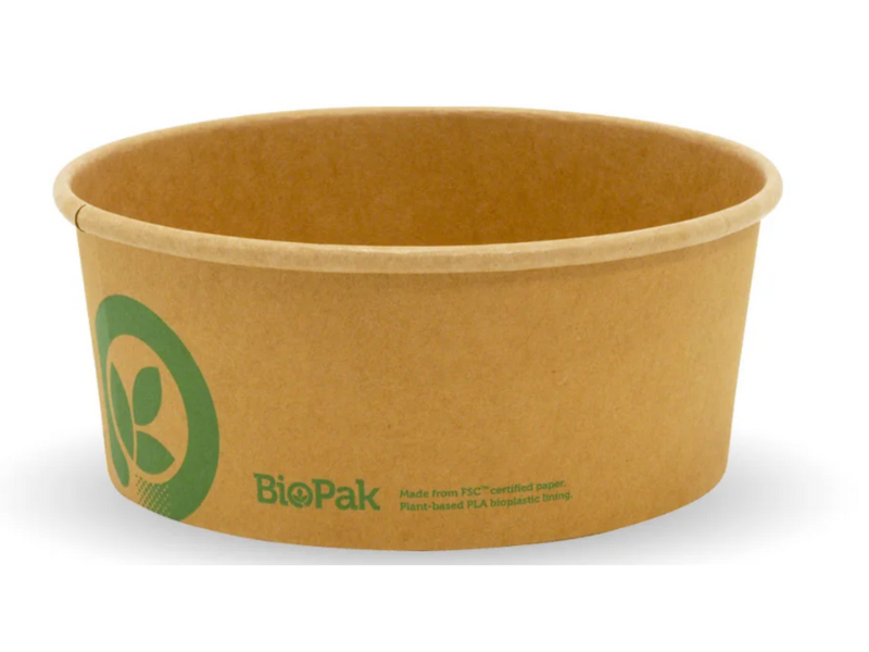 Paper BioBowls are made from premium paperboard with a water-based lining. This medium paper bowl has a printed kraft look. It is designed wider to better display your poke bowls, salad bowls and other takeaways. This eco-friendly bowl seals tight for deliveries. Sold in quantities of 400 per outer.