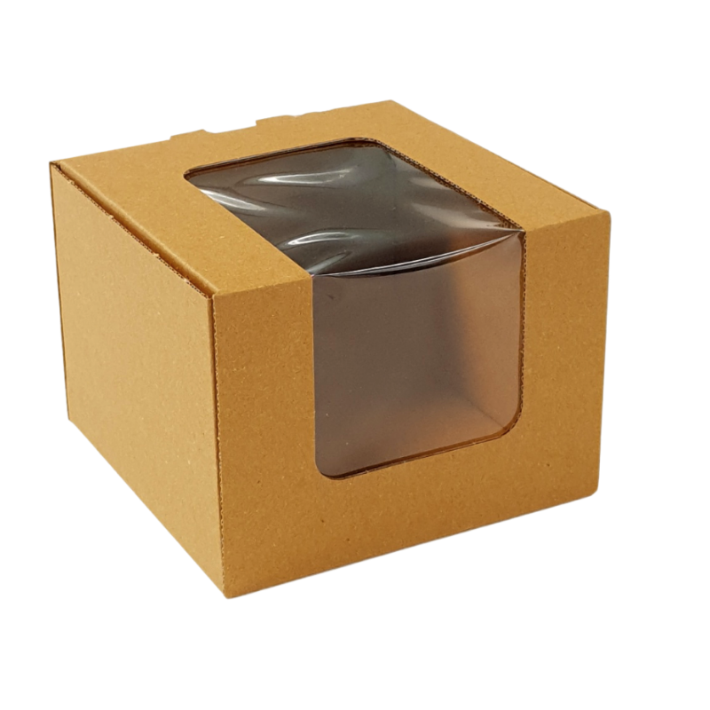 Cake Box with Window, 130L x 130W x 100H mm (5 x 5 x 4"), Natural Kraft
