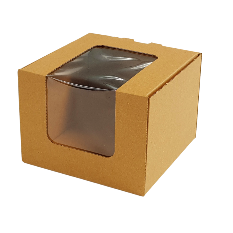 - Cake Box with Window, 130L x 130W x 100H mm (5 x 5 x 4"), Natural Kraft
