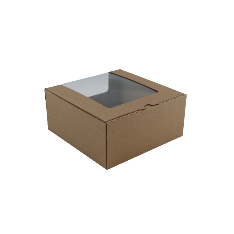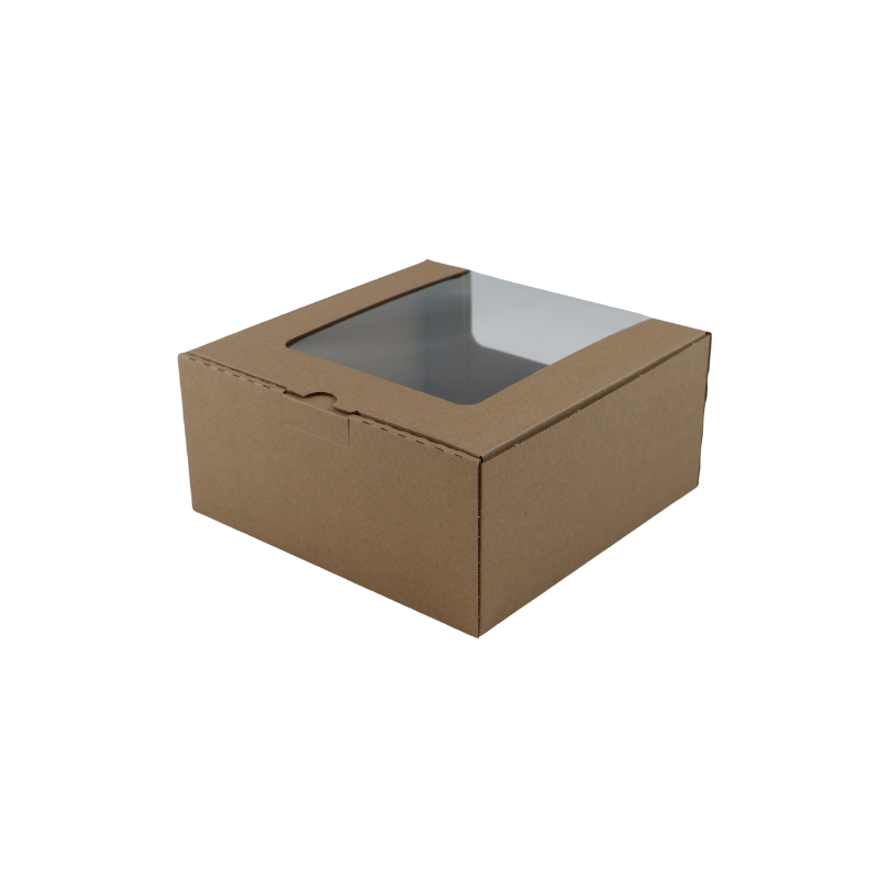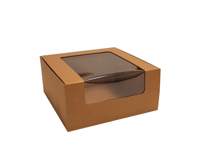 - Cake Box with Window, 210L x 210W x 100H mm (8 x 8 x 4"), Natural Kraft