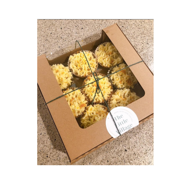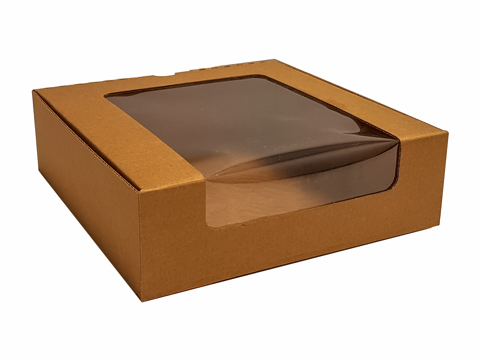 - Cake Box with Window, 210L x 210W x 65H mm (8 x 8 x 2.5"), Natural Kraft