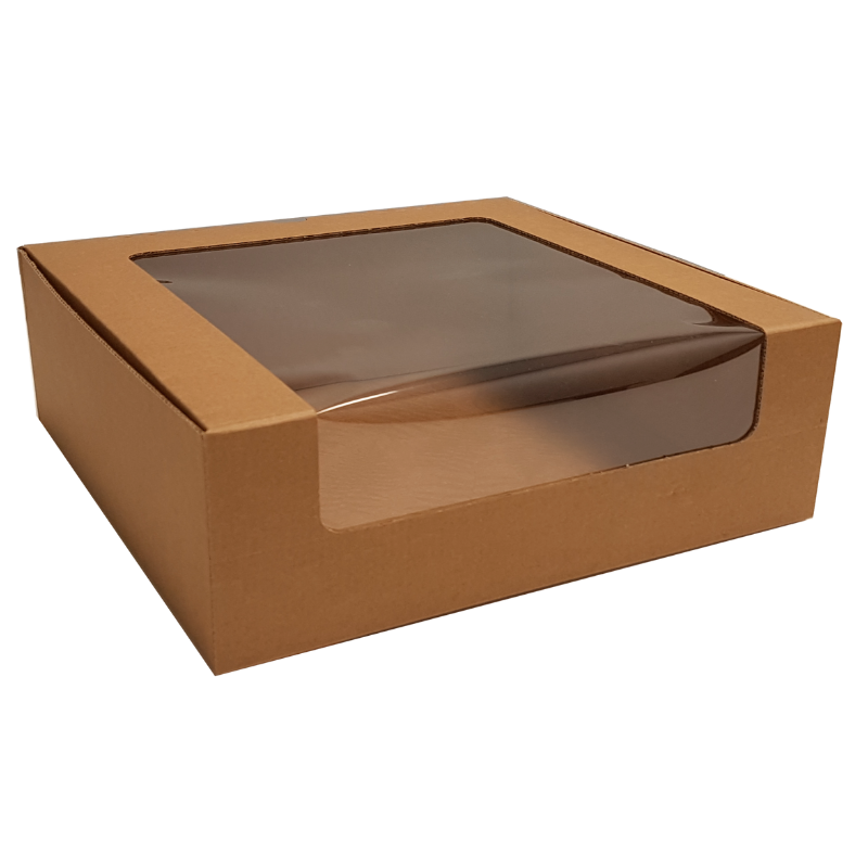 - Cake Box with Window, 290L x 290W x 100H mm (11 x 11 x 4"), Natural Kraft