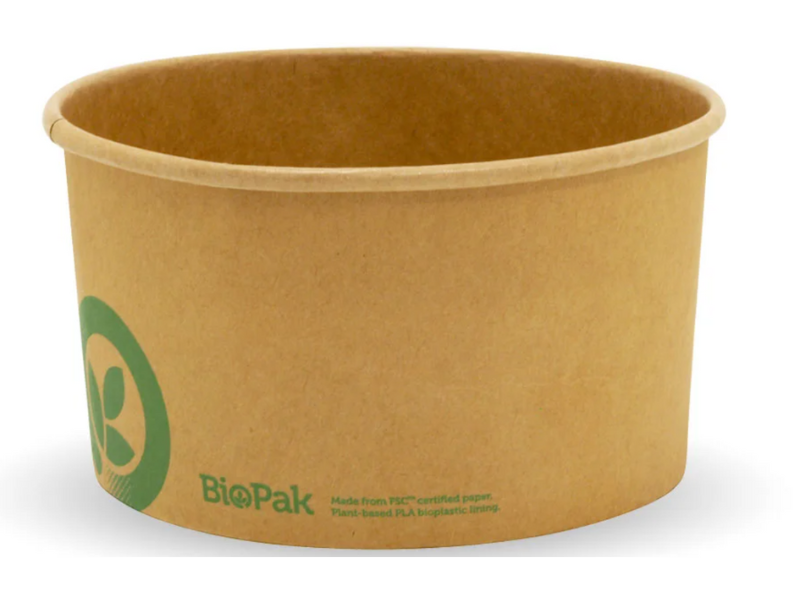 Paper BioBowls are made from premium paperboard with a water-based lining. This large paper bowl has a printed kraft look. It is designed wider to better display your poke bowls, salad bowls and other takeaways. This eco-friendly bowl seals tight for deliveries. Sold in quantities of 400 per outer.
