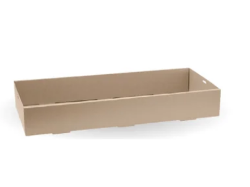 BioBoard catering trays provide a simple 2 fold assembly and lid closure and ensures a great catering experience. Ideal for larger platters. Made from FSCâ„¢ Recycled certified paper, which means the forest-based material in this product is recycled. These catering trays are home compostable and carbon neutral. Sold in quantities of 50 per outer.