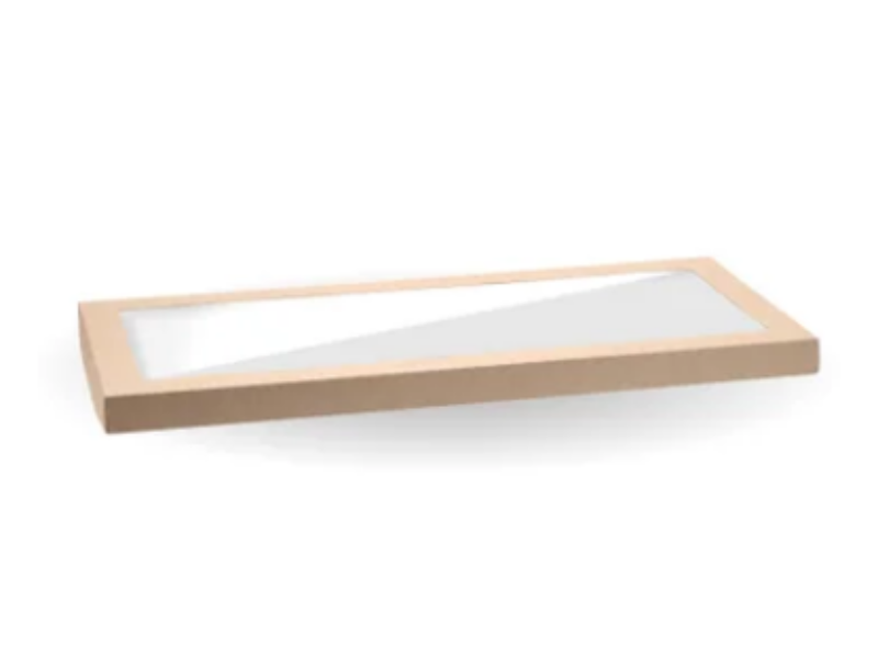 Large BioBoard Catering Tray PLA Window Lid, 564L x 255W mm, Natural Kraft