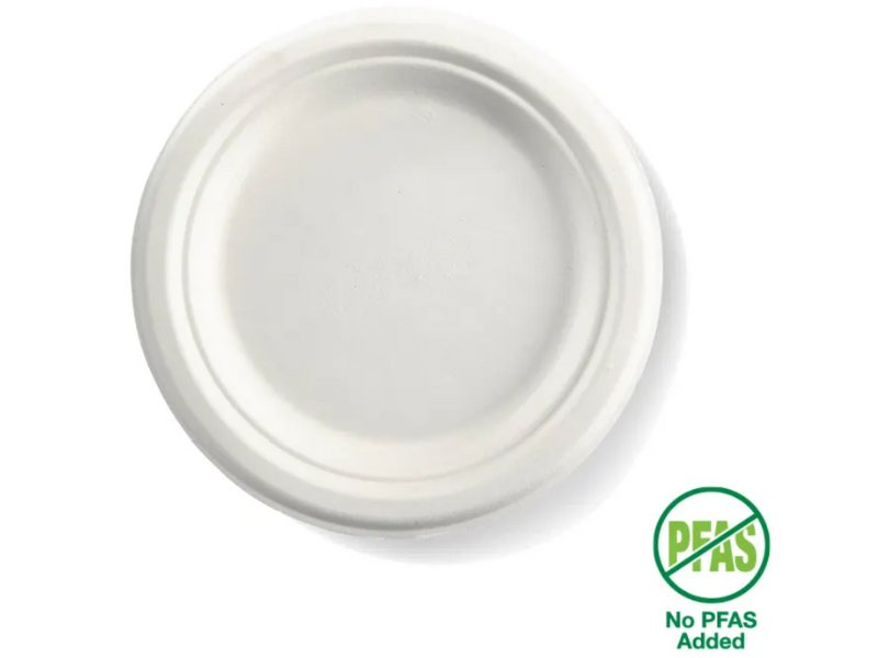 These plastic-free plates are made from rapidly renewable sugarcane pulp, a by-product of the sugar refining industry. These 18 cm (7 inch) round bagasse plates are a more eco-friendly alternative to plastic plates or paper plates. Sold in quantities of 1000 per outer.