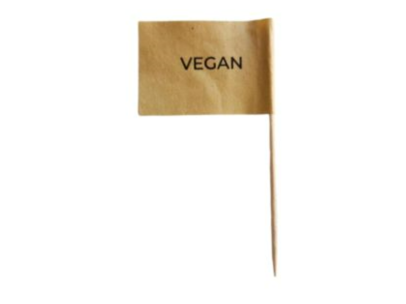 • Natural Kraft Flag Pick with "Vegan" printed on
