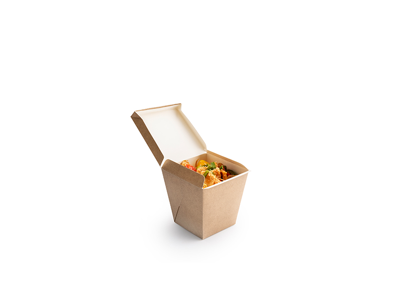 NeverLeak Noodle Box with Folding Lid, 700 ml, Natural Kraft Print