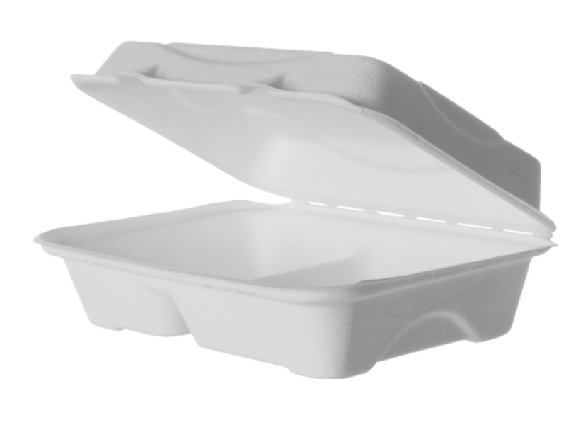 SugarCane, 2 Compartment Clamshell, 229L x 152W x 76H mm, White