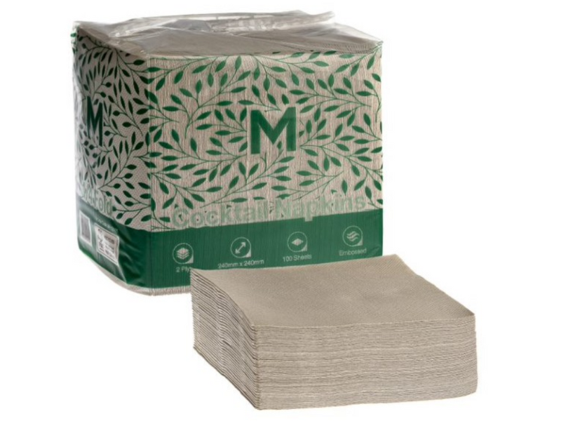 Cocktail Napkins 1/4 Fold Brown, 24 x 24 cm, 2 Ply FSC Recycled®