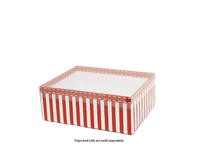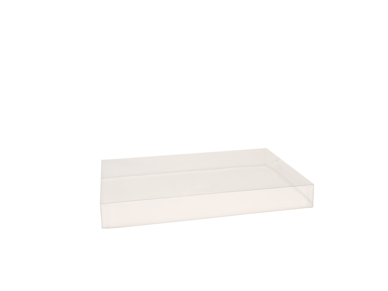 Transparent PVC Lids can be used on a combination of large hamper trays (B2). The transparent lid is designed to showcase your product. Supplied pre-assembled with corners glued. Sold in quantities of 50 per outer.