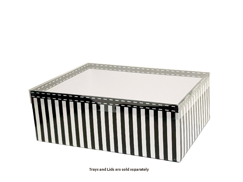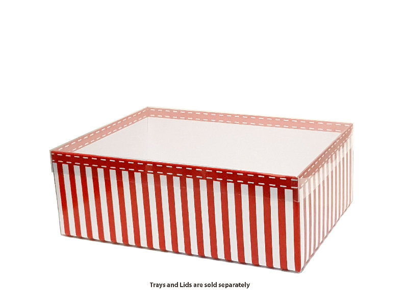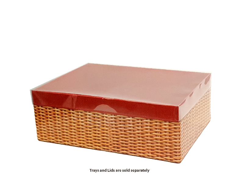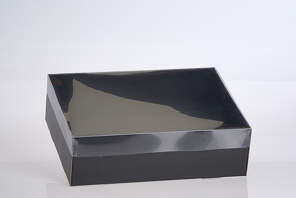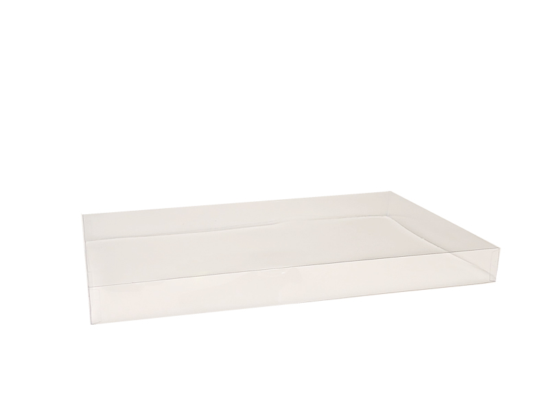 Transparent PVC Lids can be used on a combination of x-large hamper trays (B3). The transparent lid is designed to showcase your product. Supplied pre-assembled with corners glued. Sold in quantities of 25 per outer.