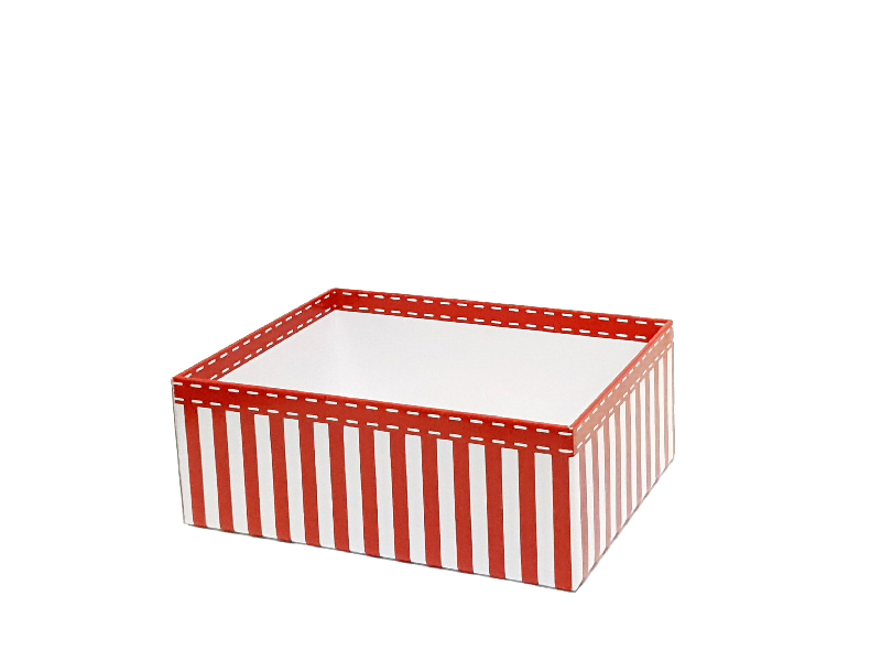 For an eye-catching, effortlessly sophisticated and festive look, packaging your items with style using this large chic red and white striped box. Quick and easy to assemble hamper tray. Fully recyclable in NZ. Sold in quantities of 50 per outer.