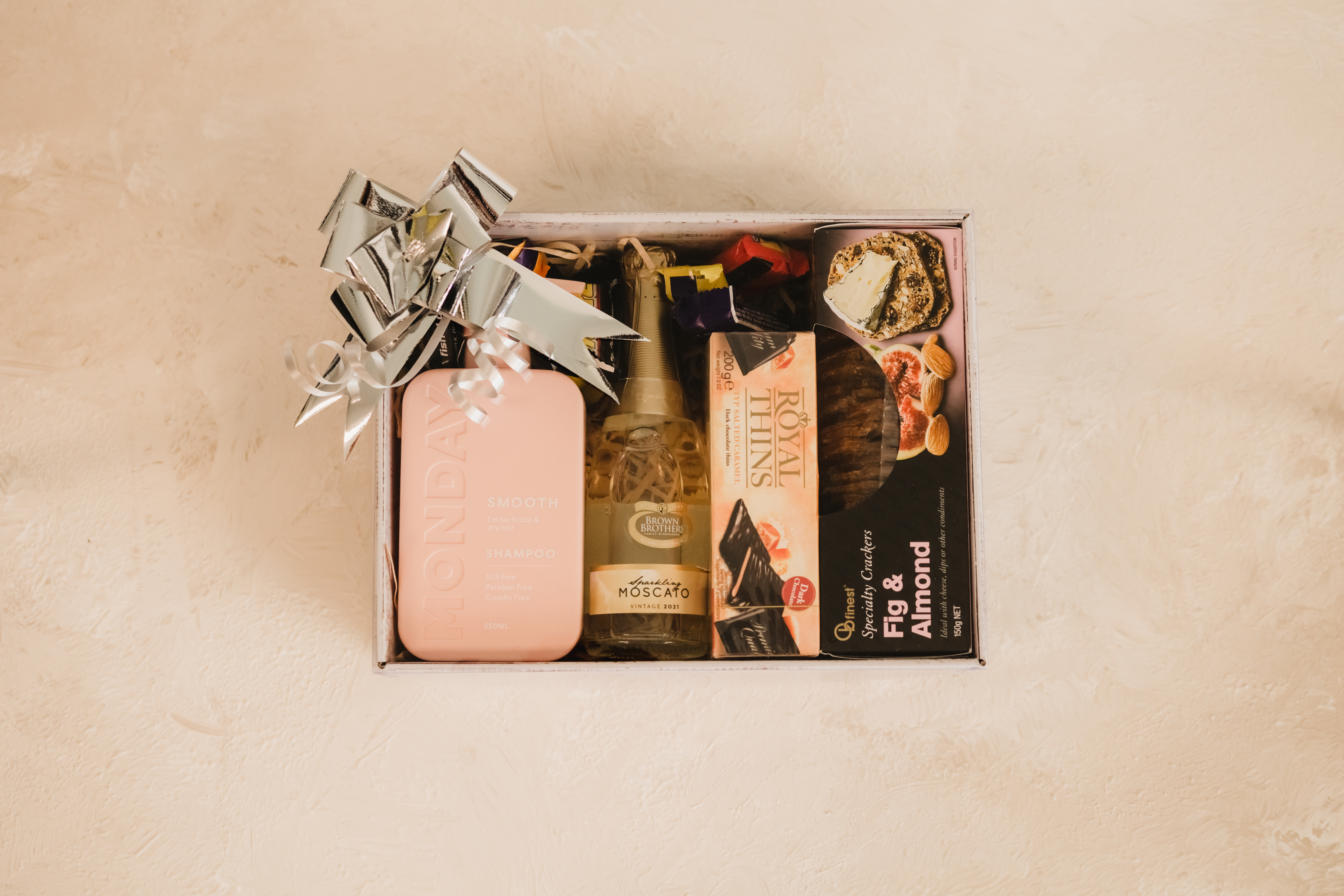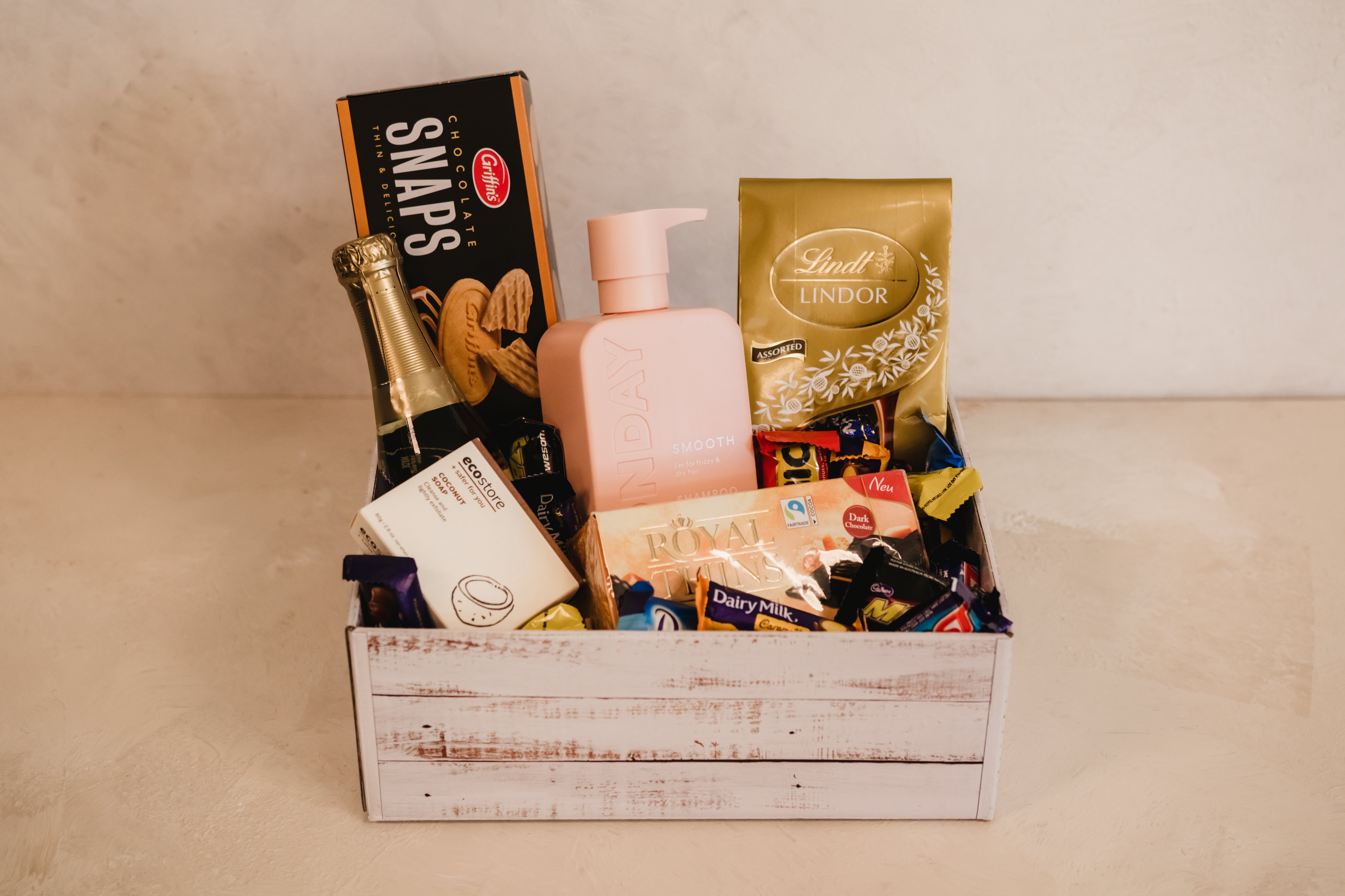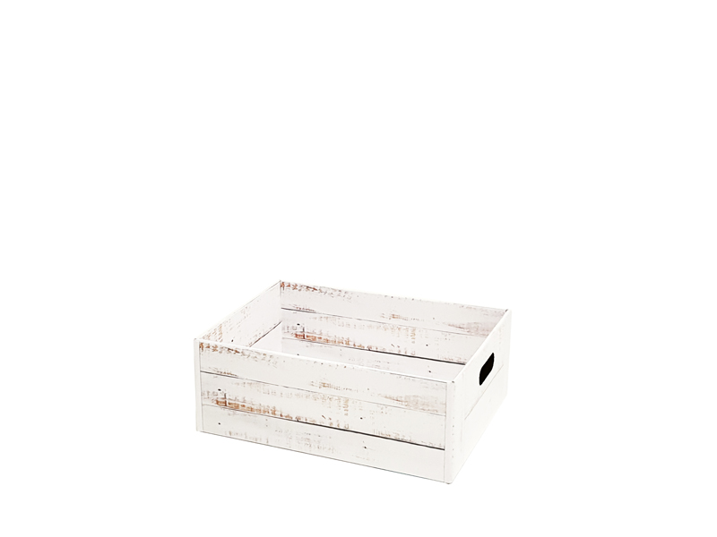 - Small Hamper Tray, 250L x 190W x 96H mm, White Wash/Wooden Design Print