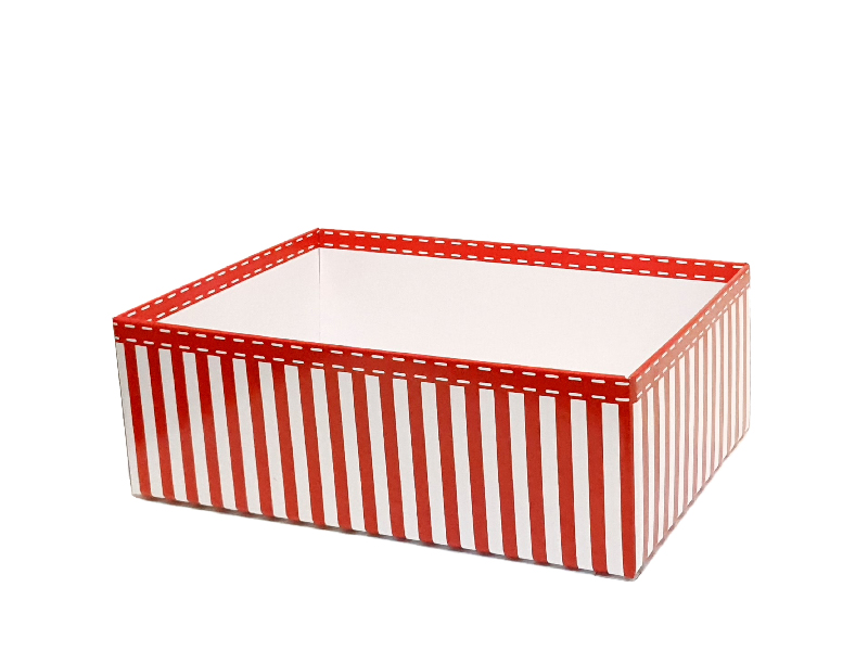 For an eye-catching, effortlessly sophisticated and festive look, packaging your items with style using this X-Large chic red and white striped box. Quick and easy to assemble hamper tray. Fully recyclable in NZ. Sold in quantities of 25 per outer.
