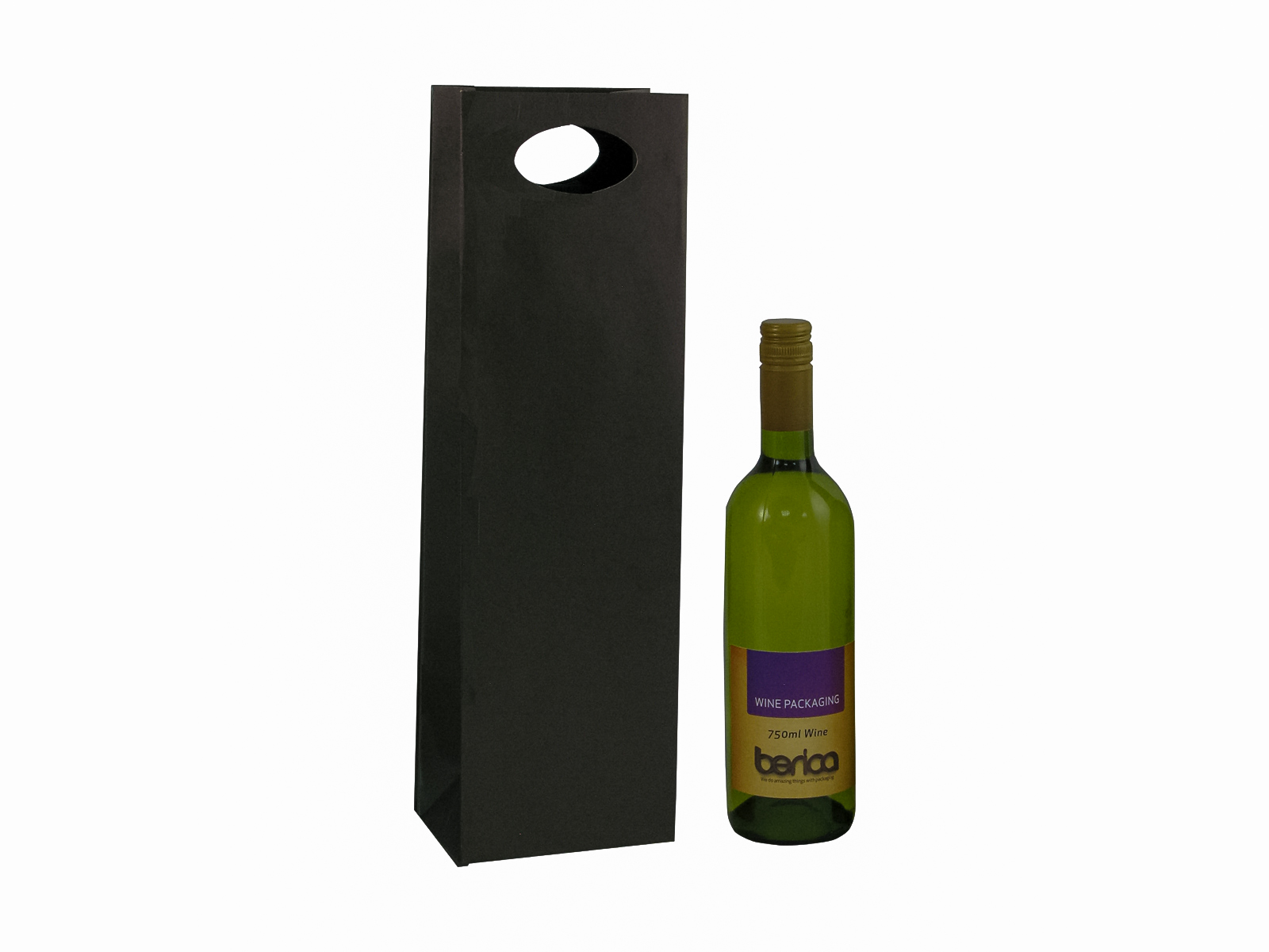 - Wine Bag for one Bottle with Die Cut Handle, 110L x 90W x 420H mm, Black
