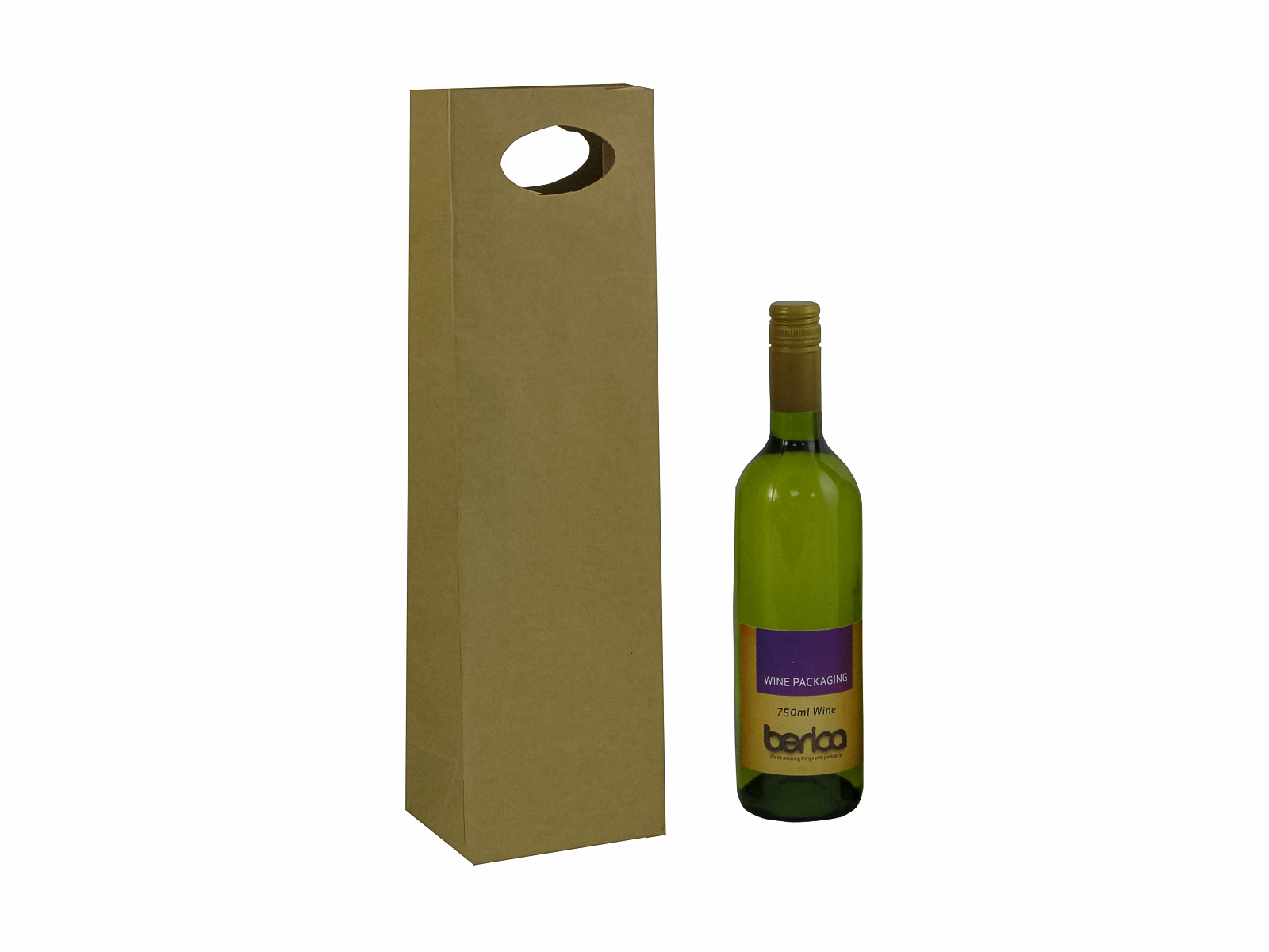 - Wine Bag for one Bottle with Die Cut Handle, 110L x 90W x 420H mm, Natural Kraft