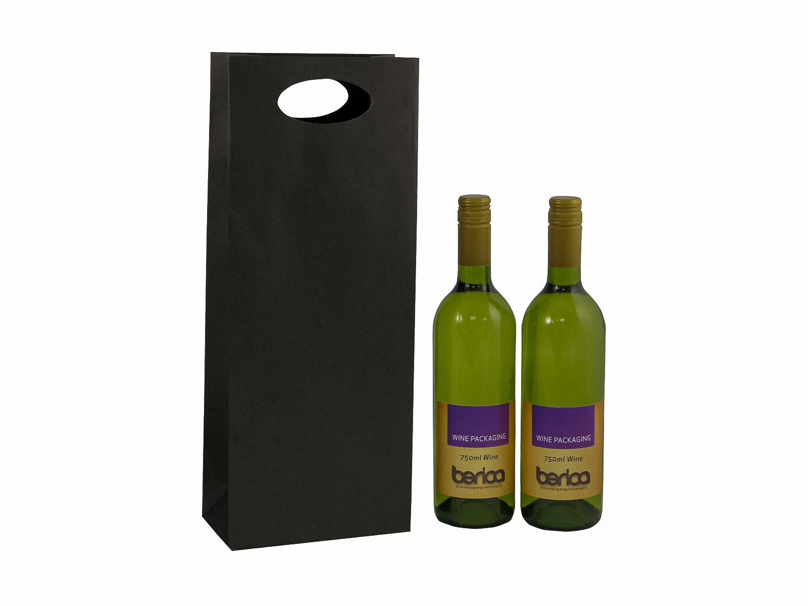 - Wine Bag for two Bottles with Die Cut Handle, 170L x 90W x 420H mm, Black