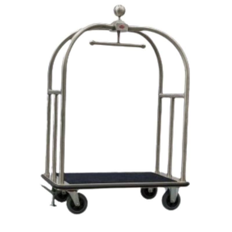 Whatever the size of your hotel, motel or service apartment Wagen has a trolley to meet your needs including this birdcage bellboy luggage trolley. This trolley has a brushed silver finish so as not to show handprints though they are still polished to perfection giving your guests the right first impression about your hotel.