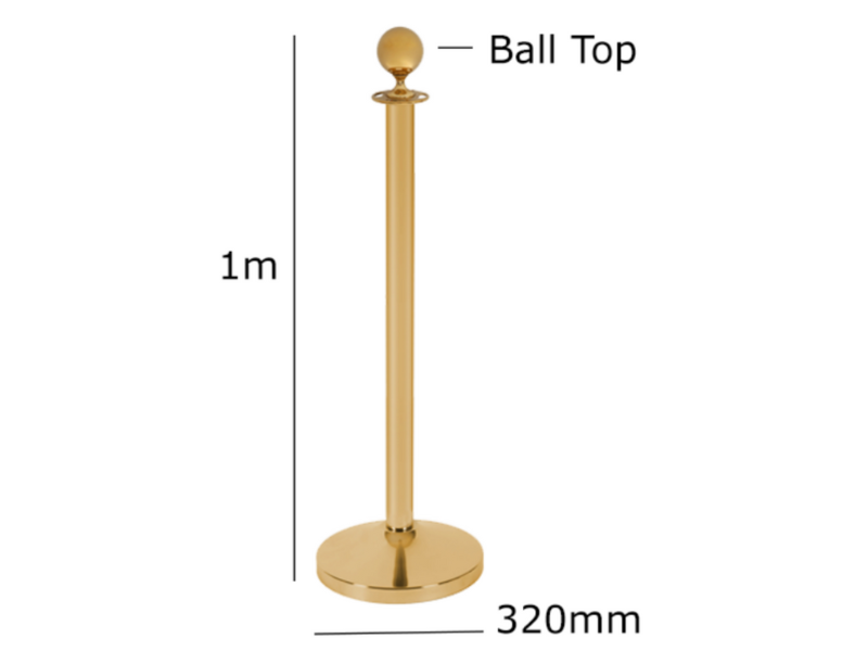 A high quality, durable solution to queuing and queue management, these 1 metre high Gold Rope Stands feature a stylish polished finish and are superior in build quality to many similar units. Simply attach a barrier rope to the post by joining the clips together in order to create clear, designated pedestrian flow.