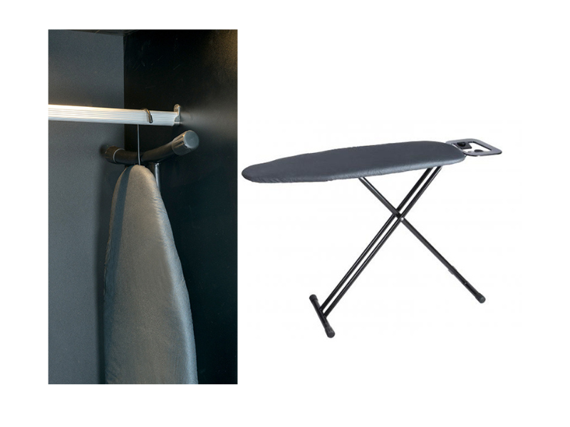 This ironing board with the hanging hook is a great way to store your ironing board. Just simply fold the hanger out on the end of the board, and hang in the wardrobe like a coat hanger. With the double sided cover, if one side gets burnt or damaged simply turn it inside out and you are ready to go!
