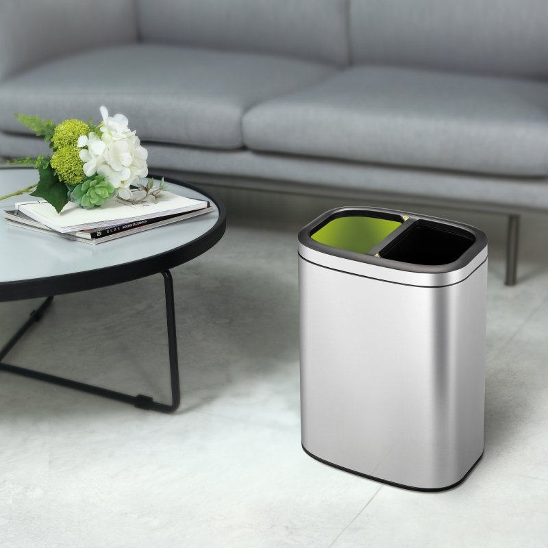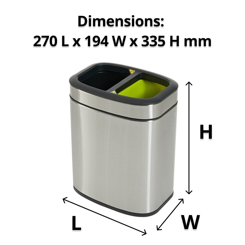 2 Compartment Rectangle Recycle Bin, 10 Litre, Stainless Steel