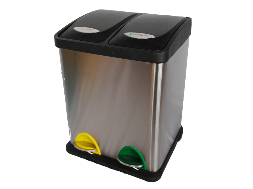 2 Compartment Step Pedal Recycling Bin, 16 Litre, Stainless Steel