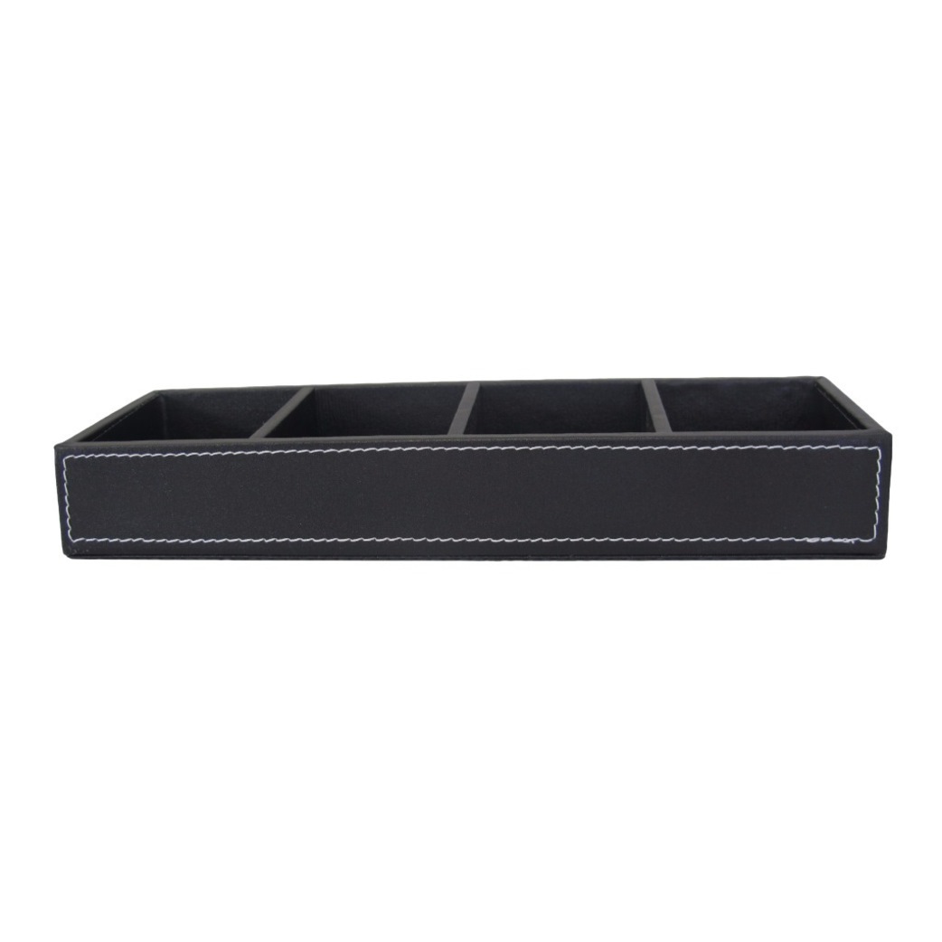 Four Compartment Display Tray, Black Leather