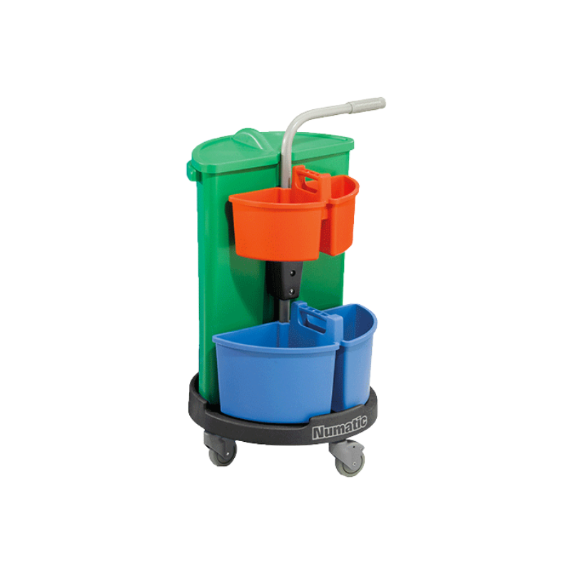Where onboard mop systems are not required, the NC-3 is the classic helper for busy people in busy, high profile environments. A 70-litre lidded waste bin can be used with or without liner bags, one large and one small colour-coded detachable cleaning caddies that ensure that all your cleaning needs are on-board and available at all times. A real timesaver and so very convenient to use.